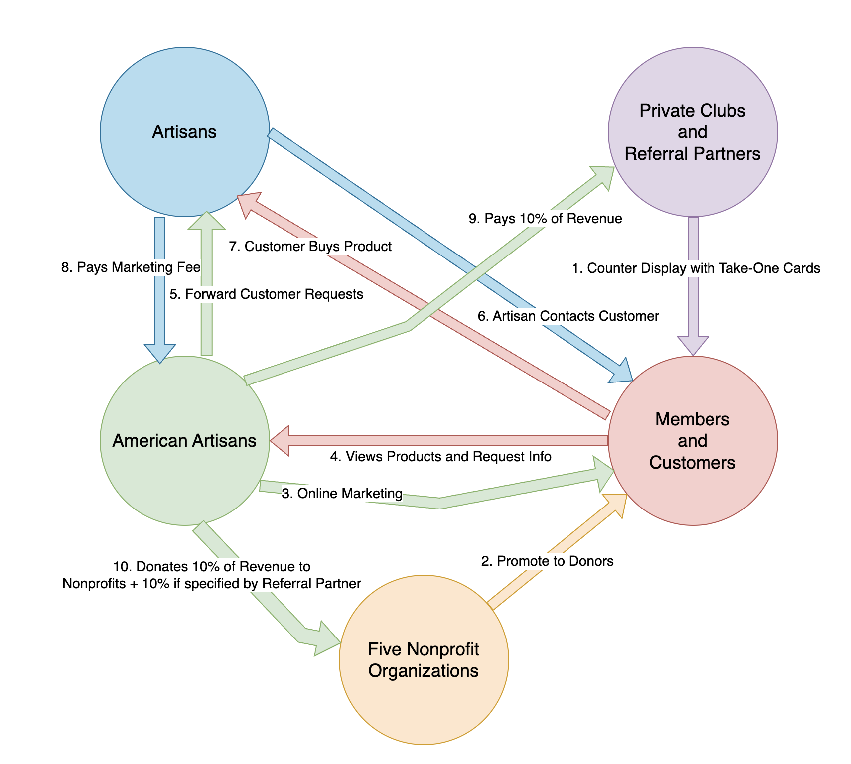 American Artisans pays the Private Club / Referral Partner 10% of gross revenue.